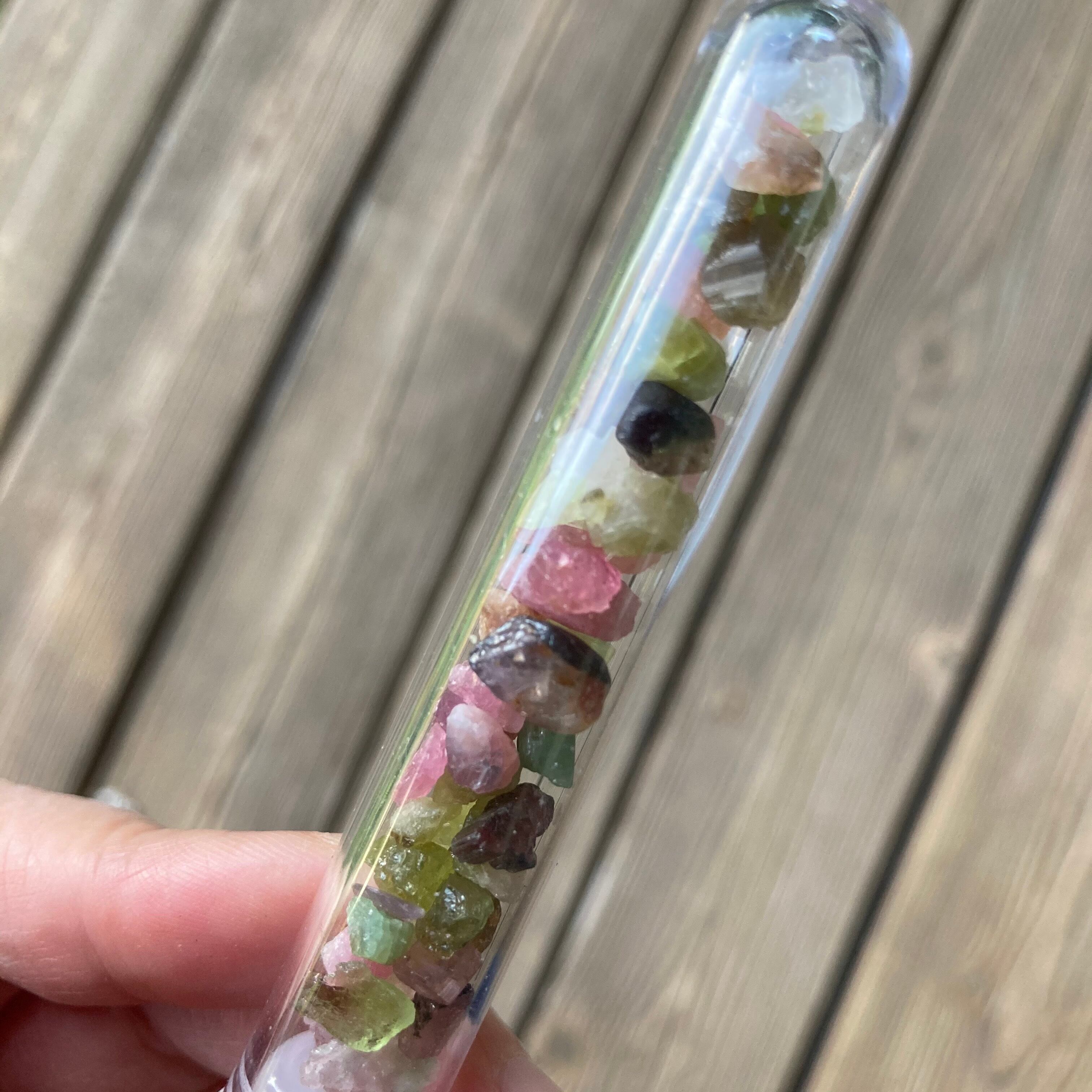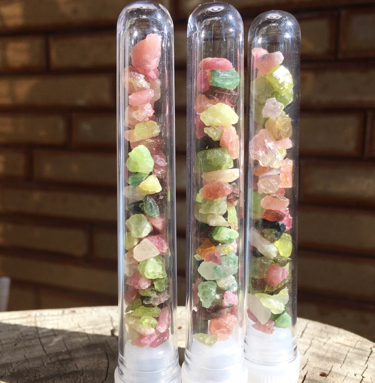試験管の入れ物に入ったトルマリンのさざれ石です。