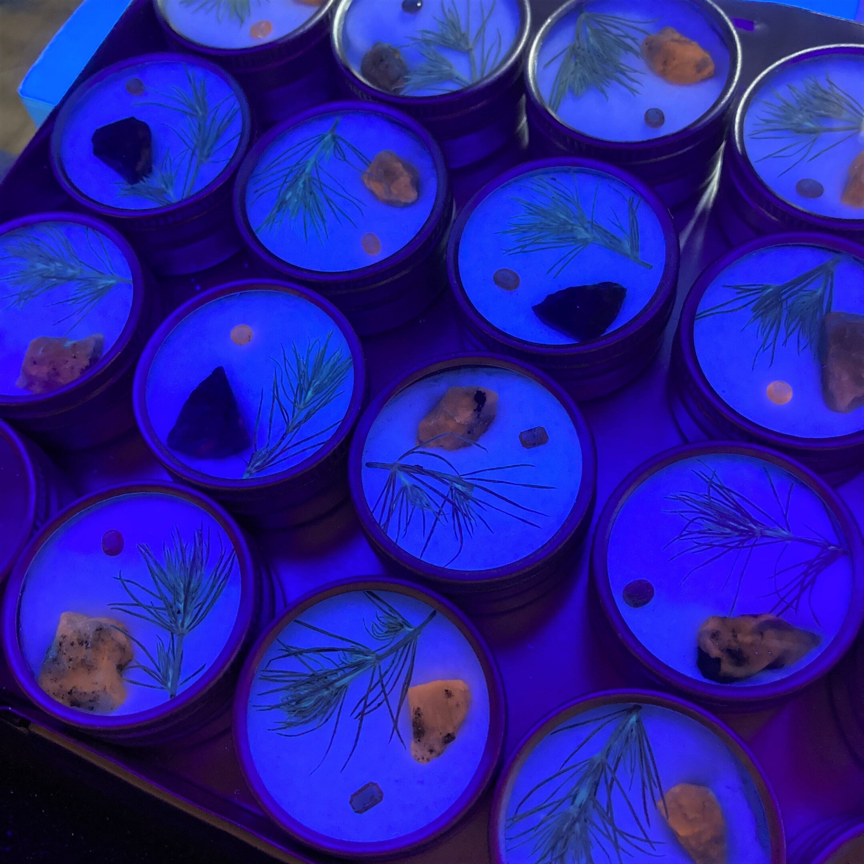 UVライト(ブラックライトなどの紫外線ライト)にて蛍光する性質があります。