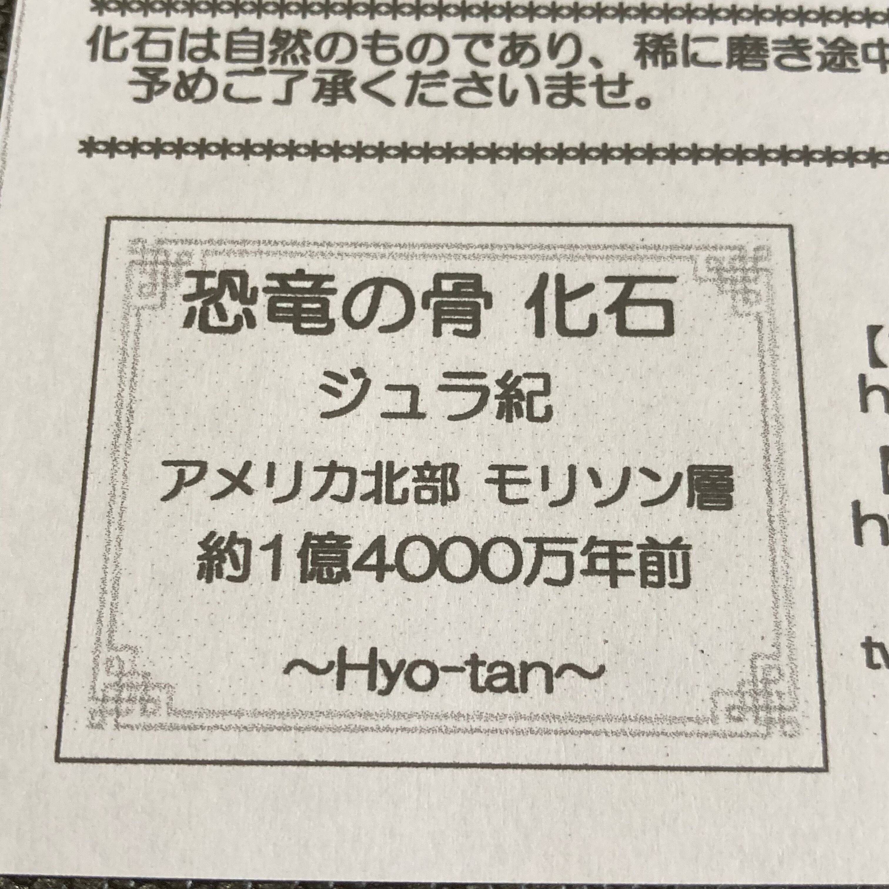 お届けするのはアメリカ北部にて採掘された恐竜の骨。