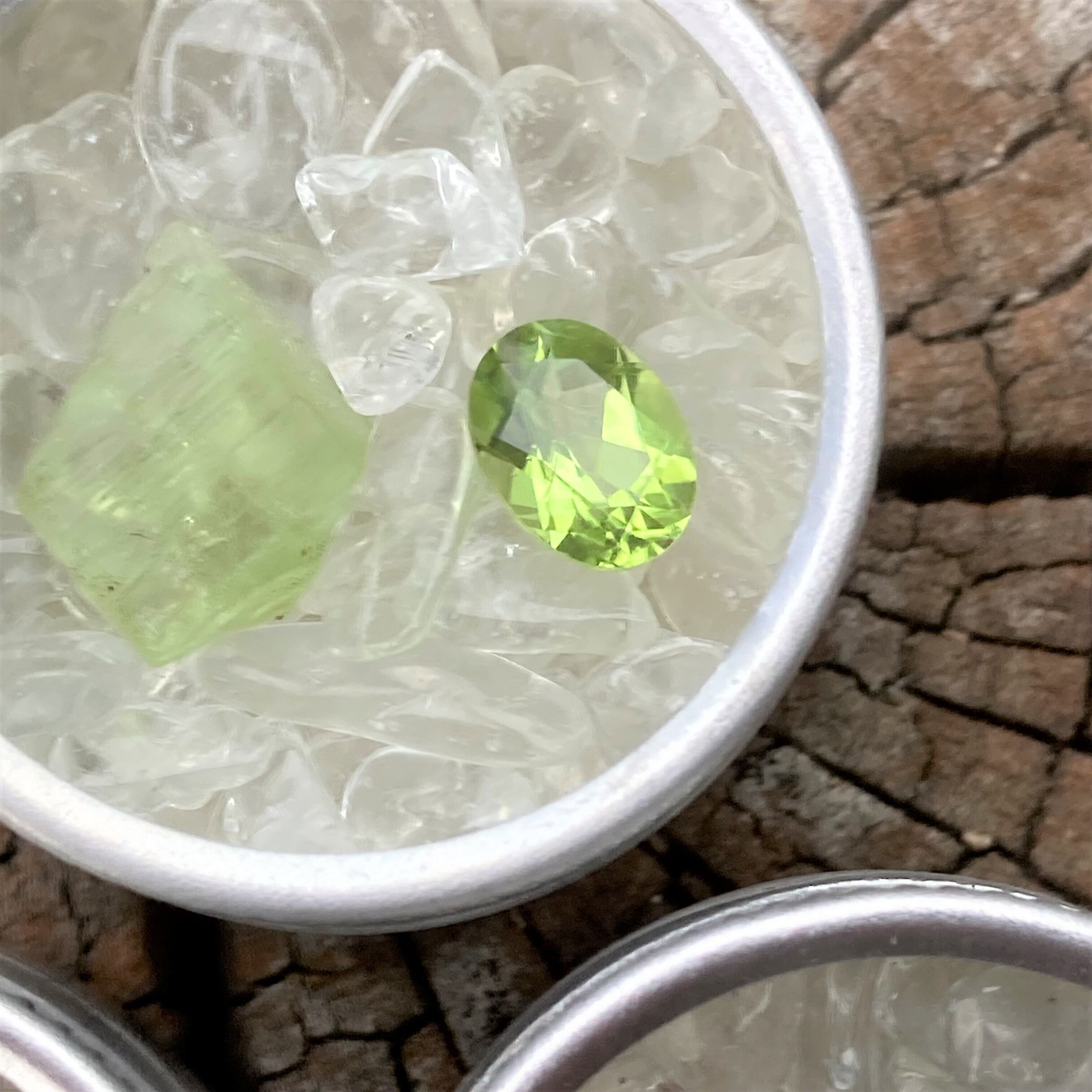 ペリドットの原石とルースを