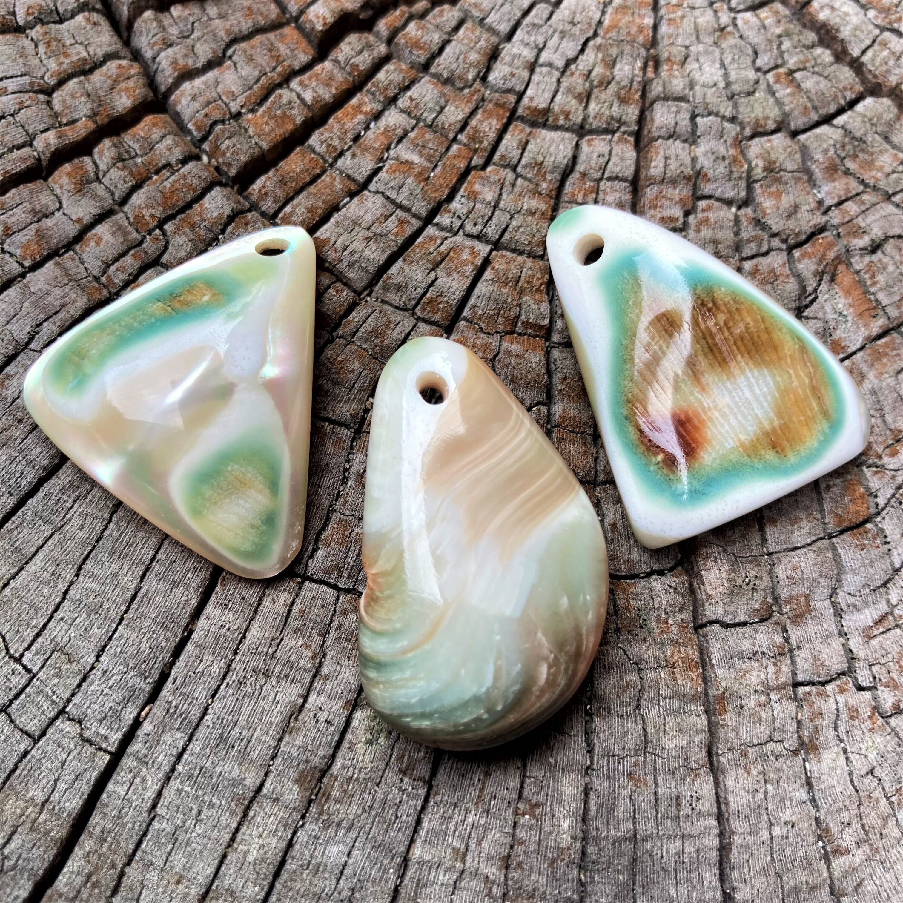 幾重にも重なる真珠層は防御の意味を持ち、身をまもるお守りとされる。